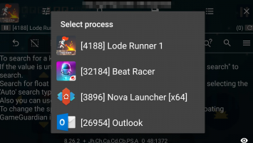 - Запустить Game Guardian и выбрать любой из процессов;