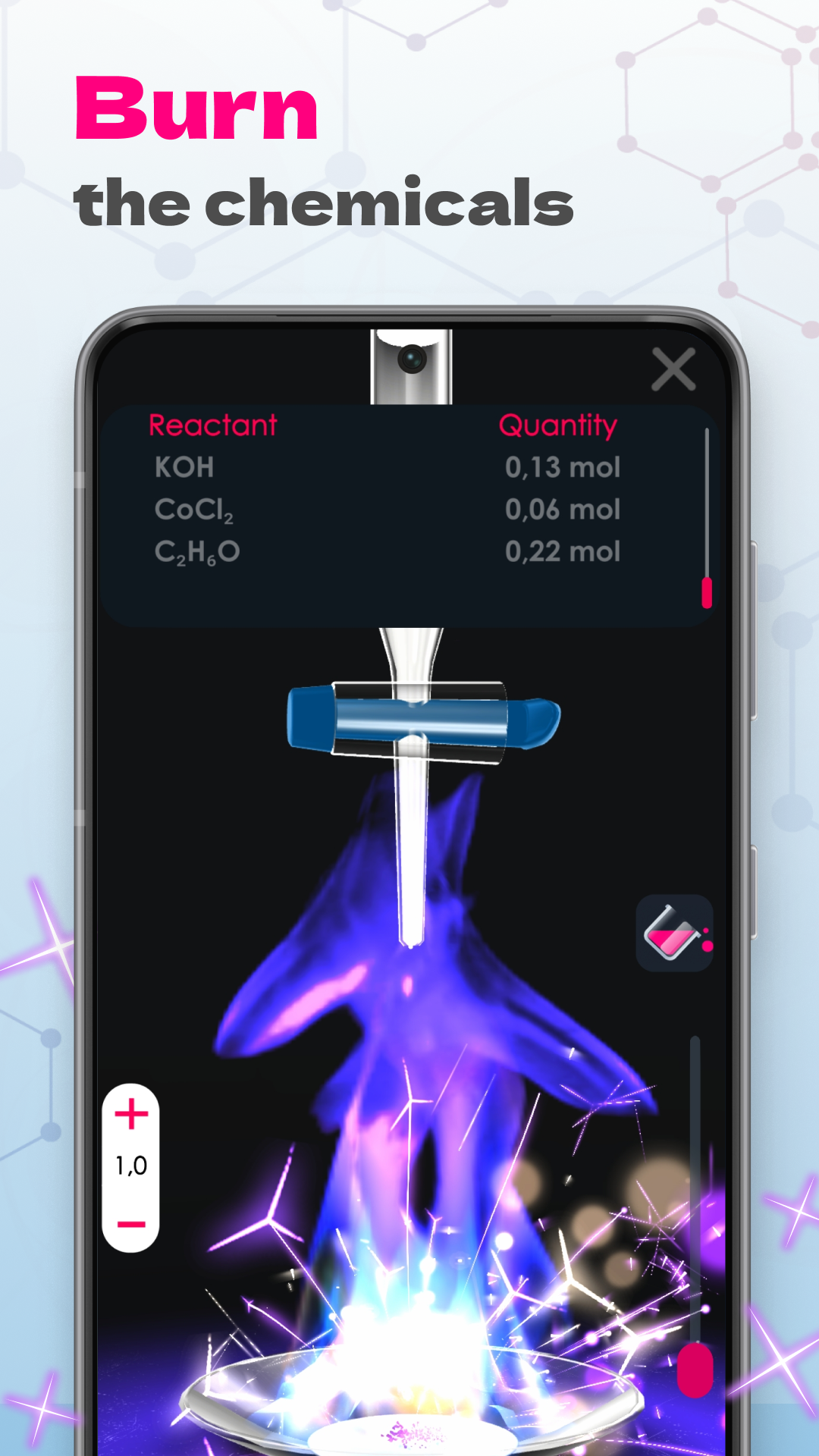 Unreal Chemist – мобильная химическая лаборатория с упором в реализм элементов, соединений и реакций. Отлично подходит как для развлечения, так и для образовательного процесса. С легкостью привлекает внимание студентов и школьников, изначально незаинтересованных в химии. Проводите опыты и решайте задачи на смартфоне, не имея под рукой лаборатории, всех элементов таблицы Менделеева и других условий. Скачивайте взлом Unreal Chemist для Андроид, чтобы пользоваться всеми материалами бесплатно.