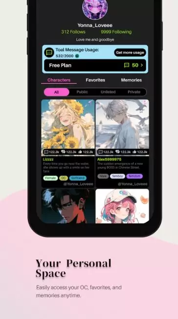 Crushon AI со встроенным модом снимает все ограничения и убирает необходимость подписки для большинства функций:- Нет ограничений на количество сообщений в день;